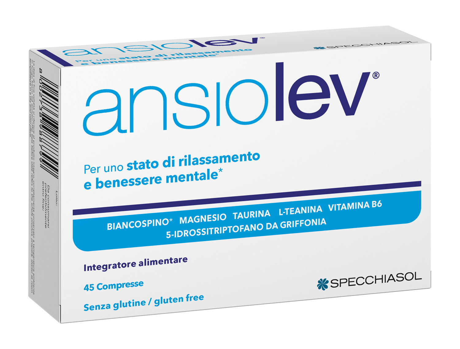 Ansiolev è un integratore alimentare che contiene Magnesio e vitamina B6 che contribuiscono a mantenere la regolare funzione psicologica, Taurina ed L-teanina, estratti di Griffonia e Biancospino che aiutano a ritrovare uno stato di rilassamento e benessere mentale.